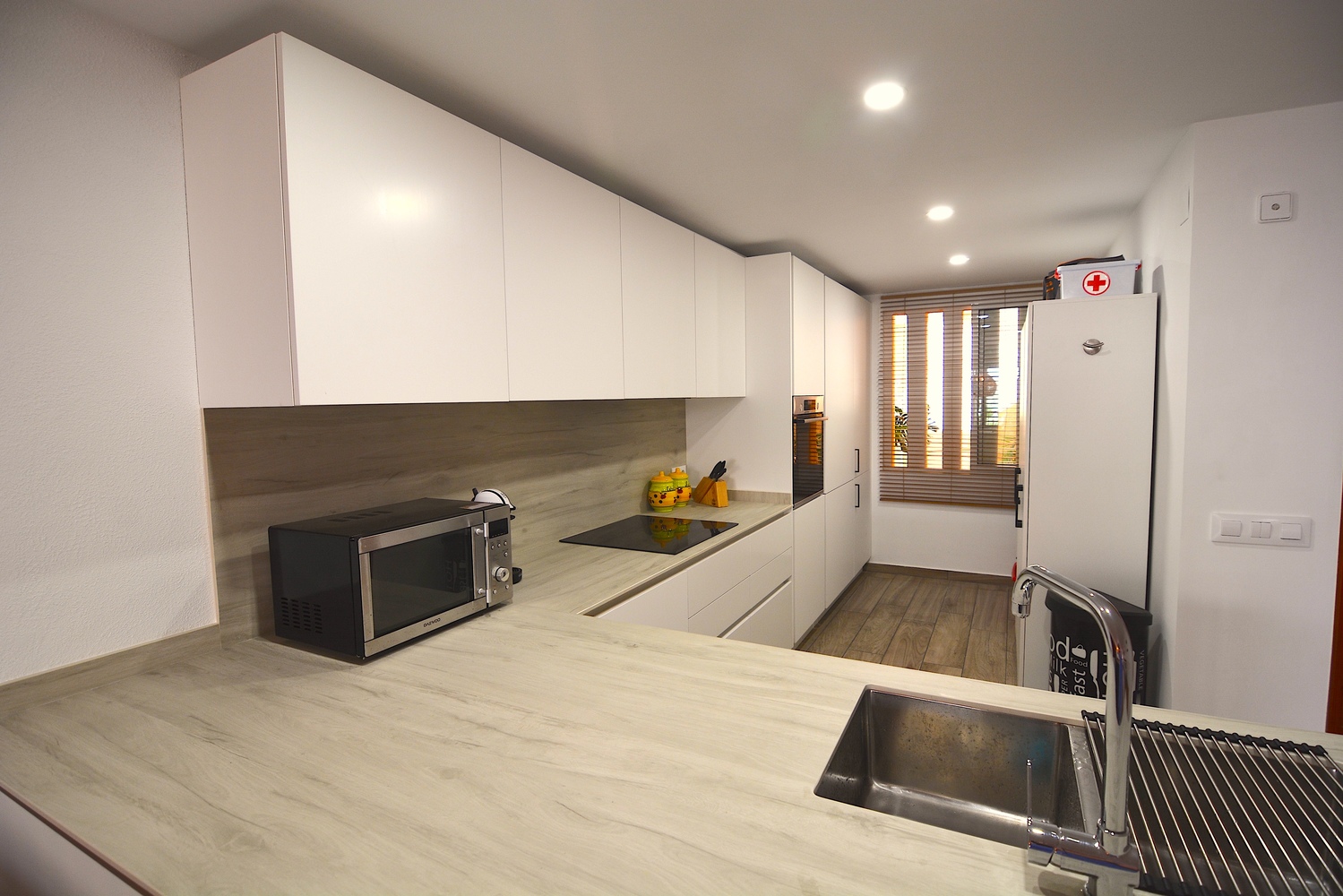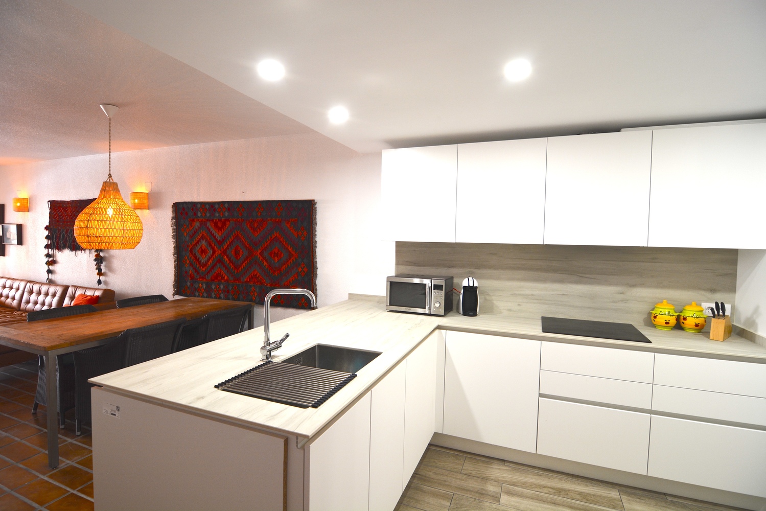The kitchen is fully equipped with oven, hob, fridge/freezer and microwave, dishwasher, as well as a Washing machine.
