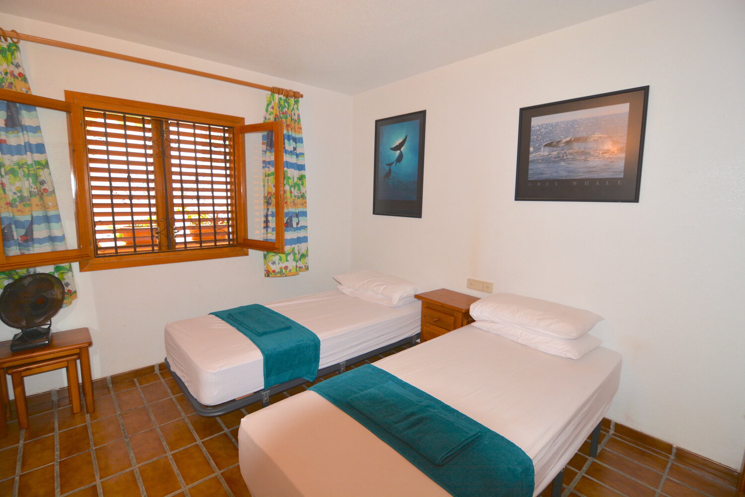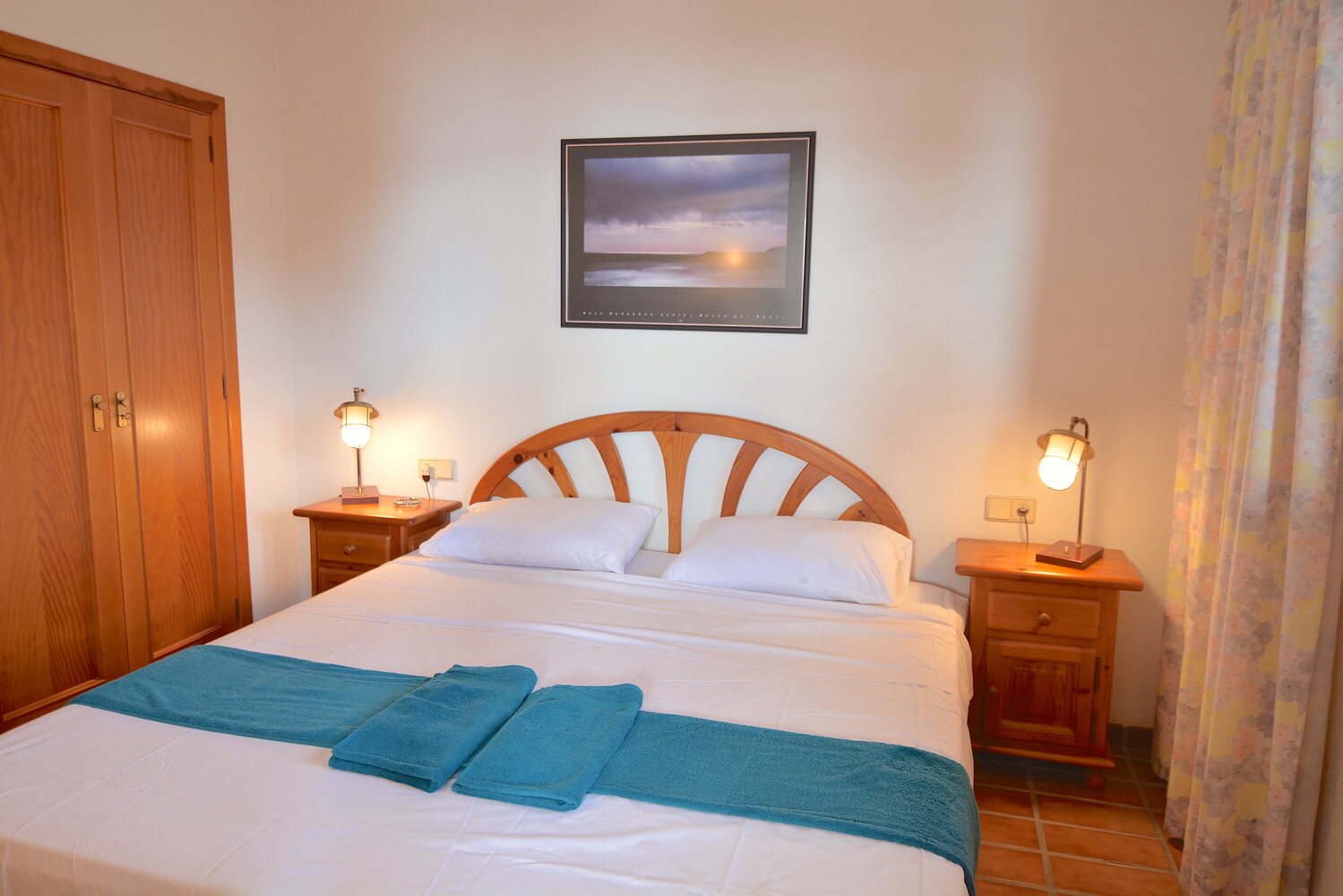 There is 1 bedroom with one doudle bed, and one bedroom with 2 single beds.