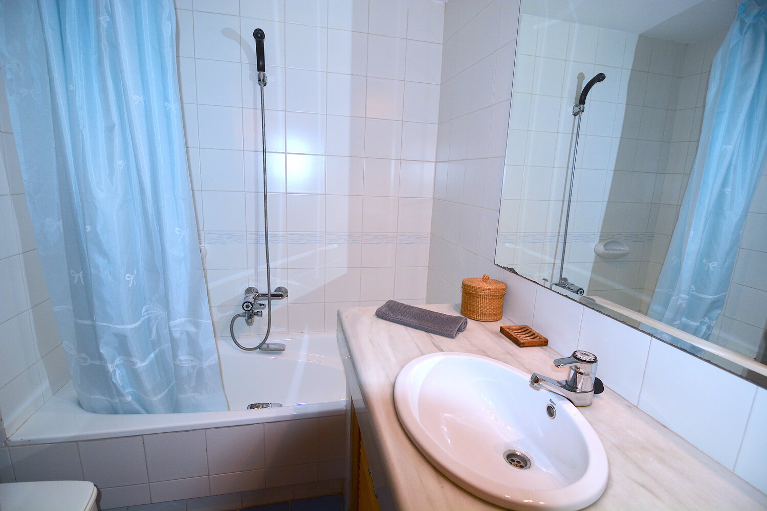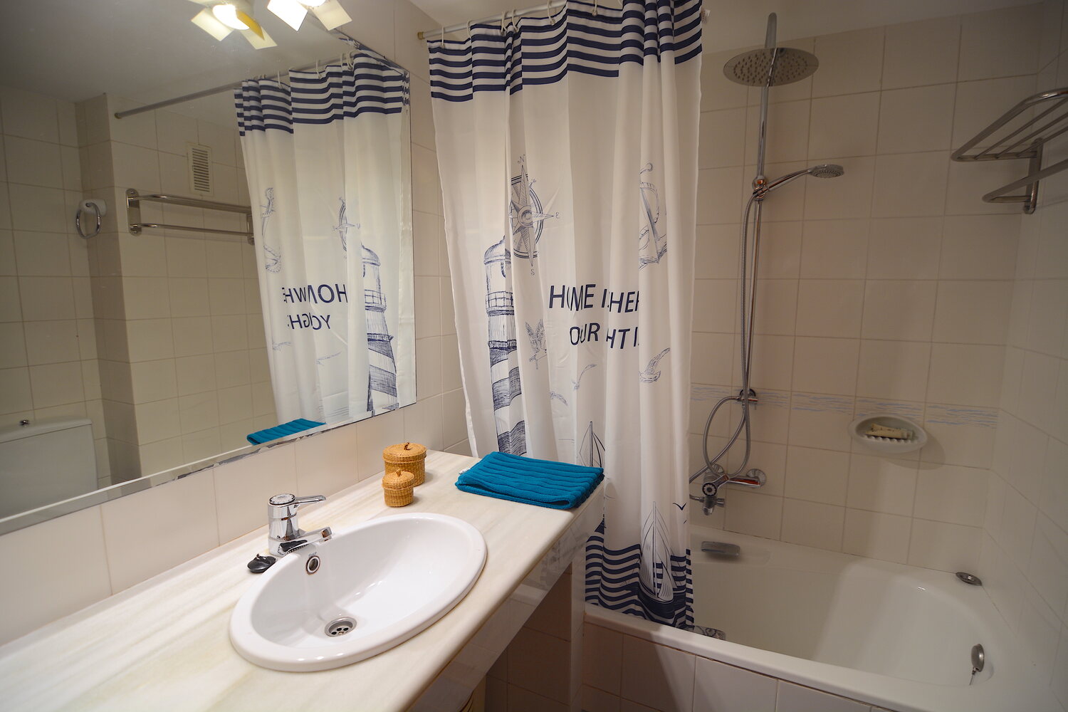 Bathroom 2: is communal has a bathtub with a shower and WC.
